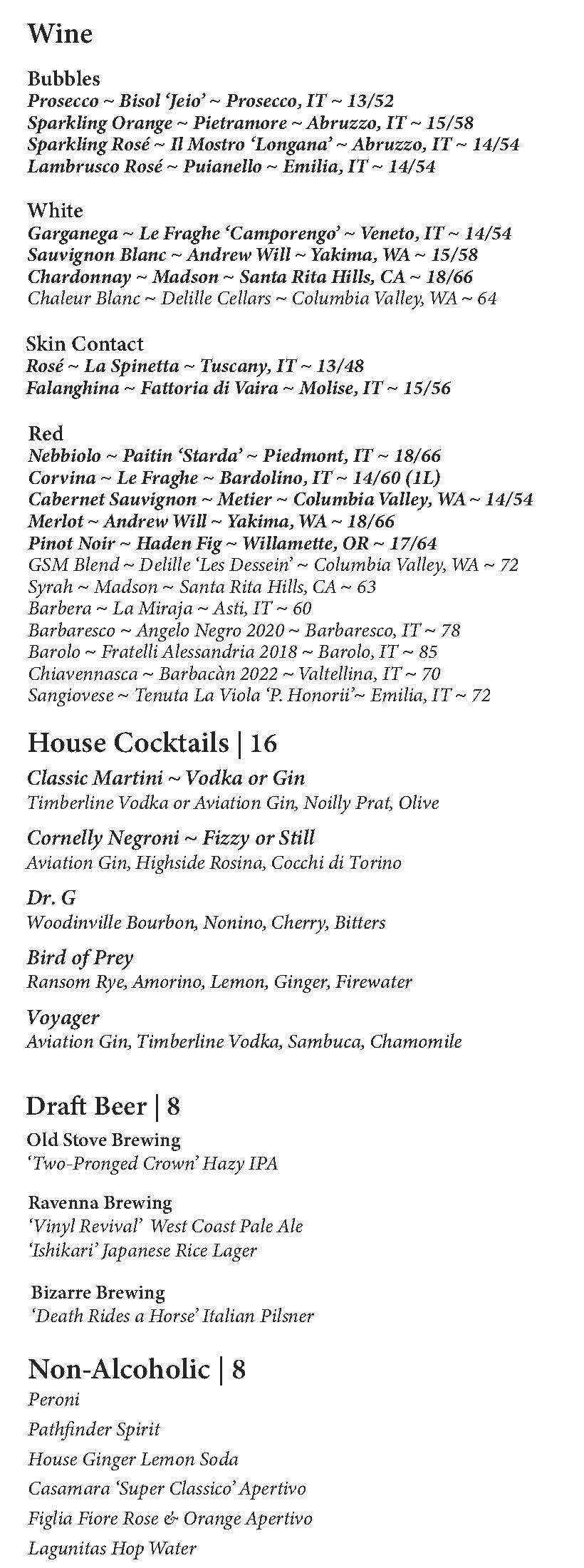 Our menu changes Frequently
